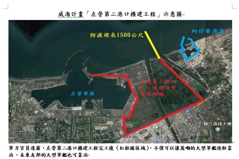 其中的西側碼頭興建工程預計2027年完工,東側碼頭興建工程則於2023年6月27日開工。未來全案完成後,將與原有的左營基地一港口合併為雙航道港口。